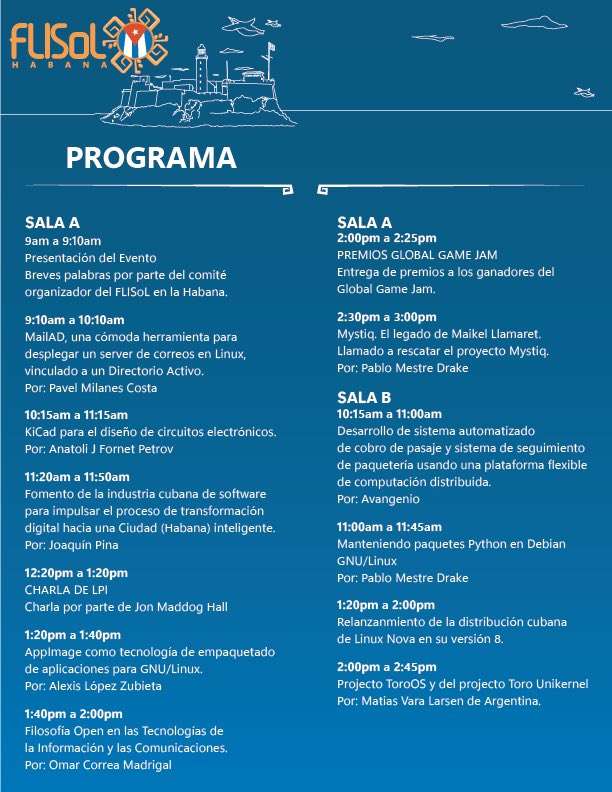 La Habana será sede el próximo 23 de abril del Festival Latinoamericano de Instalación de Software Libre (Flisol Habana), un evento que pretende constituirse como espacio ideal para la participación de todas las comunidades, empresas y personas interesadas en brindar, promover o conocer el Software Libre y su filosofía.