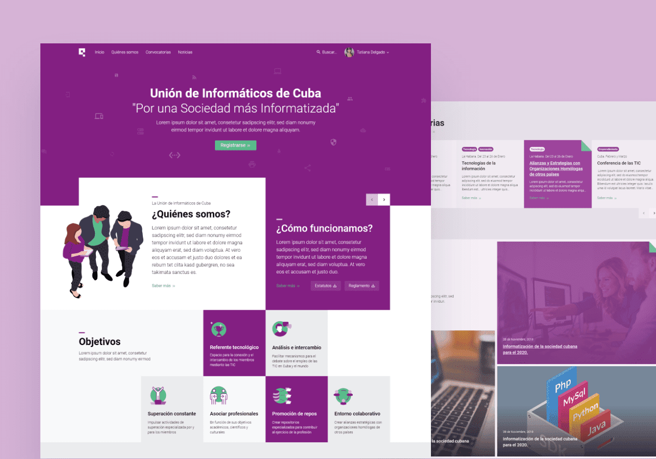 Portal web para la Unión de Informáticos de Cuba, permite brindar información sobre el quehacer de la Unión, además de gestionar su membresía, actas, cotización y cursos.