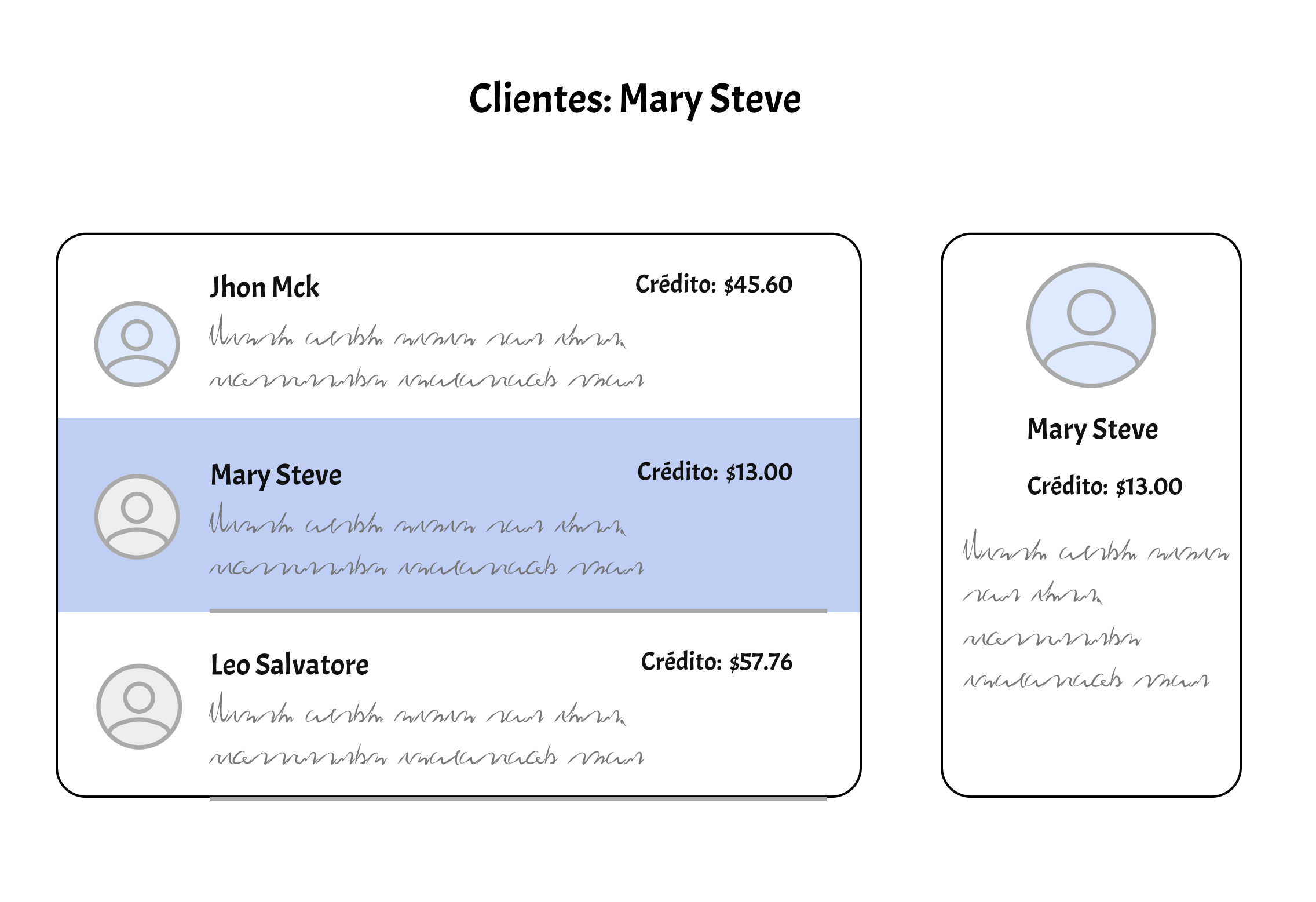 Suppose we want to implement a view with a list of customers, which will allow us to select a customer and display its information in another component. Something like this: