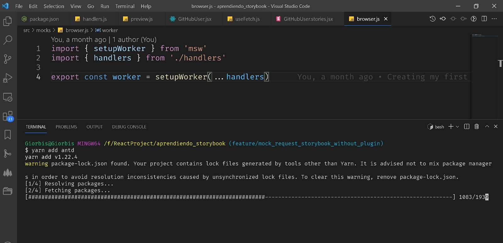 To configure Ant Design with Storybook the first thing we have to do is to install the library within a project that has React and Storybook configured. From this configuration we open the project with our favorite editor and in the root of the project, we execute the following command to install Ant Design.