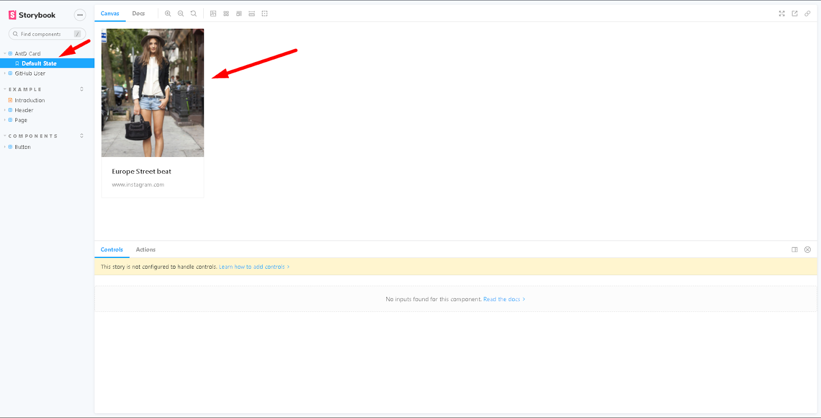 Now let’s create the story for that component by opening the file AntdCard.stories.jsx and update it with the following code: