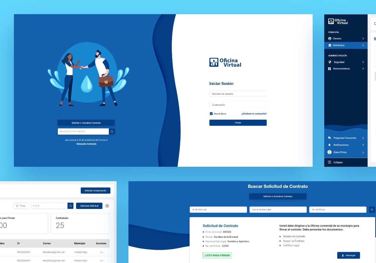 We developed the Virtual Office for Aguas de La Habana to enhance its online presence and offer a platform that facilitates customer interaction. The site allows users to easily access information about the company’s services, report breakdowns, or request water connections and sewer hook-ups. This portal not only streamlines customer service but also enables detailed tracking of requests, providing an integral and efficient solution for service management.